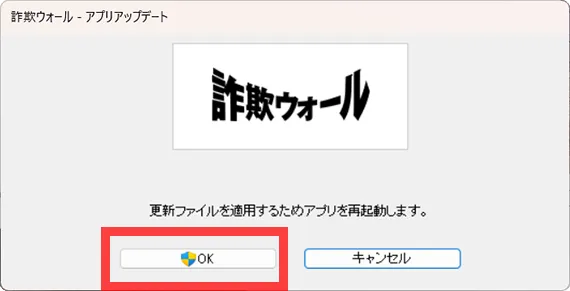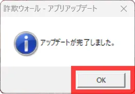 - 「アップデートが完了しました。」と表示されるので、「OK」をクリックします。