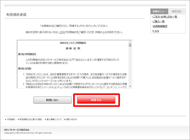 利用規約をご確認いただき、[同意する]をクリックしてください。