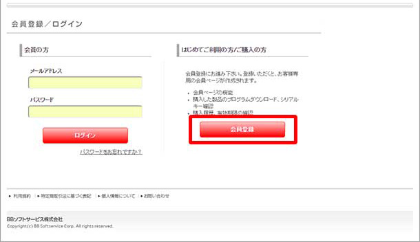 初回ご利用時は、[会員登録]をクリックし、画面の案内に従って登録をお願いします。