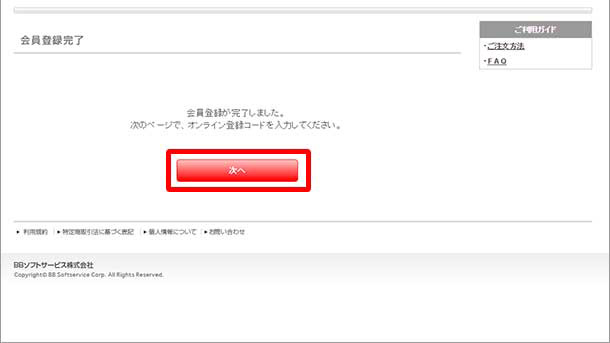 こちらで会員登録は完了です。[次へ]をクリックします。
