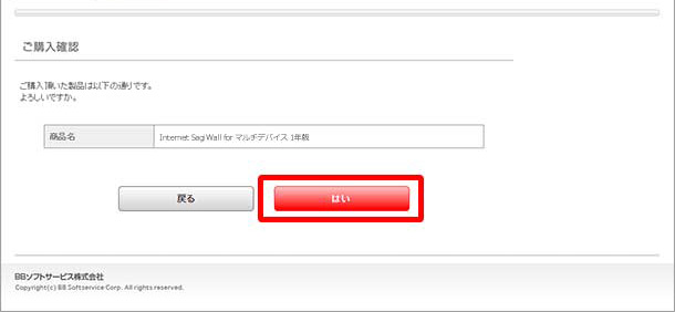 製品の確認画面が表示されますので、ご確認の上[はい]をクリックしてください。