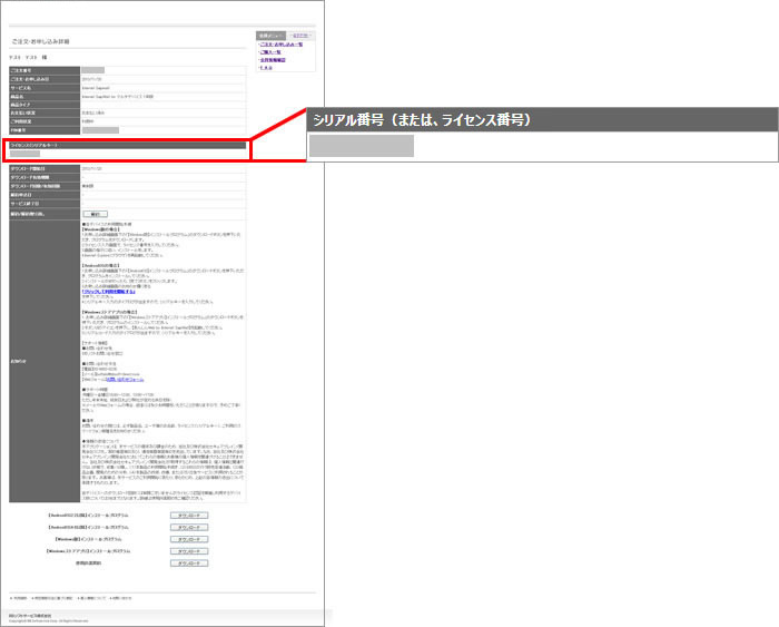 ここで表示される[シリアル番号(または、ライセンス番号)]は、後の手順で必要となりますので、控えておいてください。