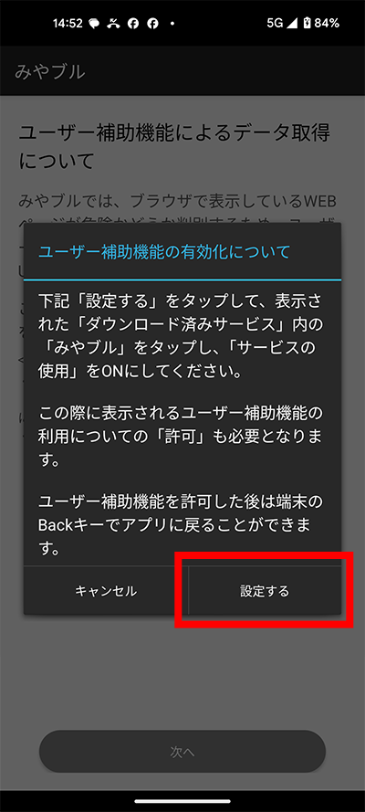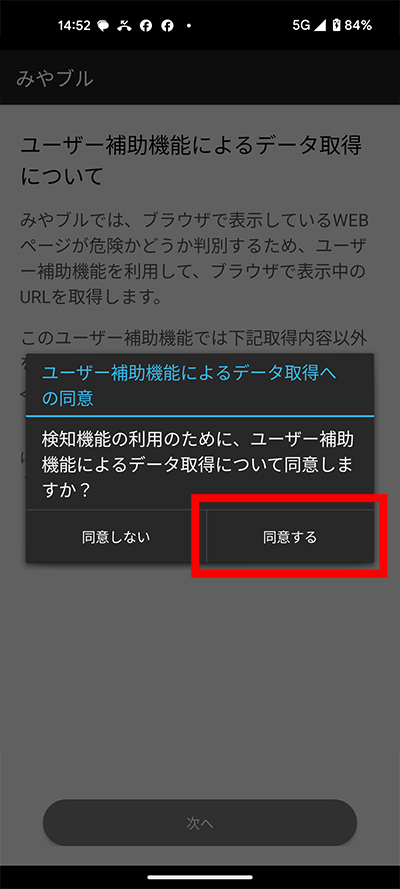 ユーザー補助利用同意画面