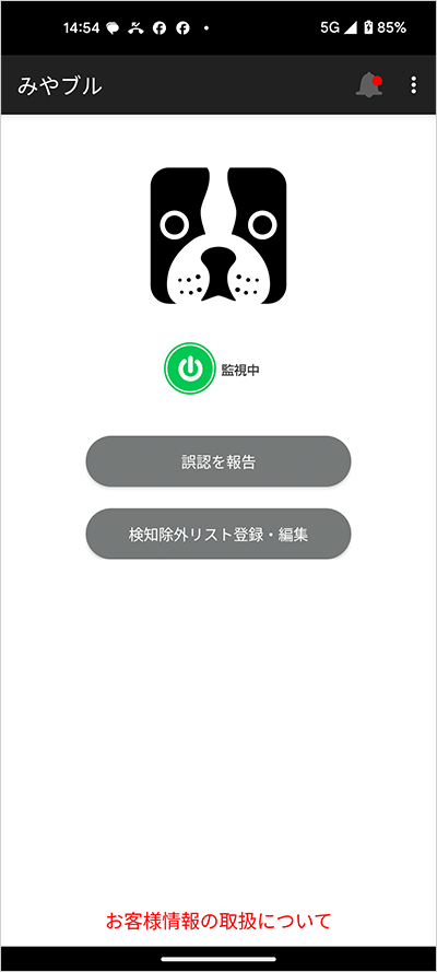 みやブルのアプリトップ画面